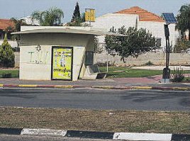 Sderot ist die grenznächste Stadt zu Gaza und per Bus über Jerusalem relativ einfach zu erreichen. Das Erste das auffällt in Sderot sind die massiv gebauten Bushäuschen, die wie mir später erklärt wird, gar keine Bushäuschen sind, sondern bombensichere Unterstände, in die man sich bei einem Raketenangriff schnell flüchten kann. Aber ausser den stummen Bunkergeselllen und ein, zwei Autos auf der Strasse wirkt das Städtchen wie ausgestorben. Würde nicht hie und da eine der bewohnenden Gestalten zwischen den Häuserzeilen hindurchhuschen, schon längst hätte sich mir das Wort «Geisterstadt» aufgedrüngt.
