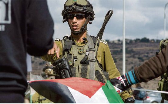 Eine von palästinensischen Aktivisten organisierte Strassenblockade wird durch israelische Soldaten aufgehoben