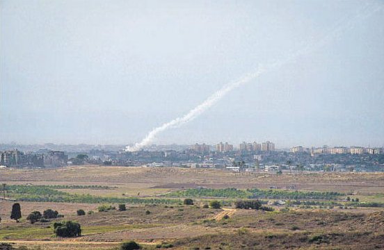 Eine Rakete wird aus Gaza Stadt in Richtung Ashkelon abgefeuert