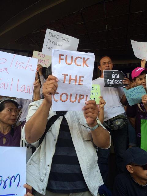 Sowohl in Bangkok als auch in Chiang Mai fanden sich Demonstranten zusammen und protestierten gegen die Junta. Es kam zu mehreren Konfrontationen, doch das Militär wagte nicht, hart durchzugreifen, weil Journalisten das Geschehen teils live im Fernsehen – natürlich nicht dem thailändischen – übertrugen oder Demonstranten und Passanten mit ihren Smartphones Bilder machten und diese sofort online stellten.