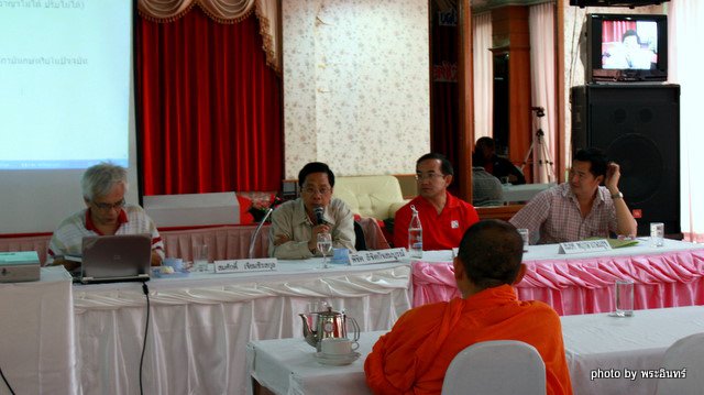 Auf der Morgenveranstaltung sprachen zwei eingeladene Redner, der Assistenzprofessor Dr. Somsak Jeamteerasakul und der Professor Dr. Pichit Likitkijsomboon, über Artikel 112 (Details können an dieser Stelle nicht wieder gegeben werden). Die Nachmittagsveranstaltung wurde von Mr. Somyot Pruksakasemsuk, Dr. Sunai Julapongsathorn und Dr. Pongsak Phusitsakul moderiert. Teilnehmer tauschten ihre Ansichten und Meinungen hinsichtlich Artikel 112 aus und einigten sich darauf, verschiedene Aktivitäten zu organisieren, die zur Abschaffung von Artikel 112 beitragen sollen.